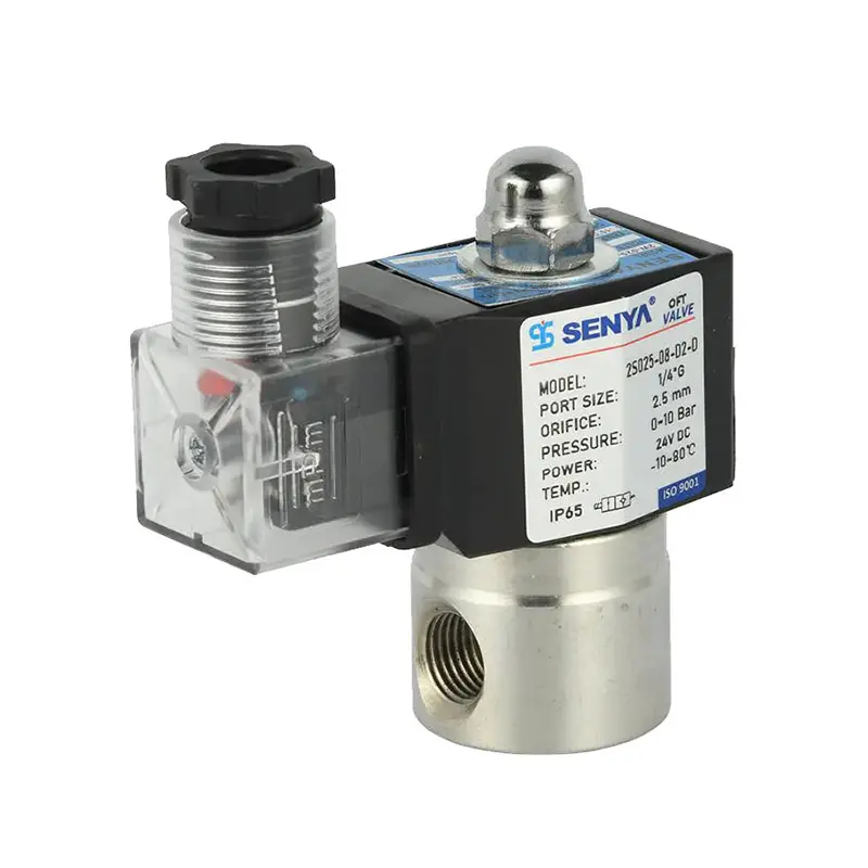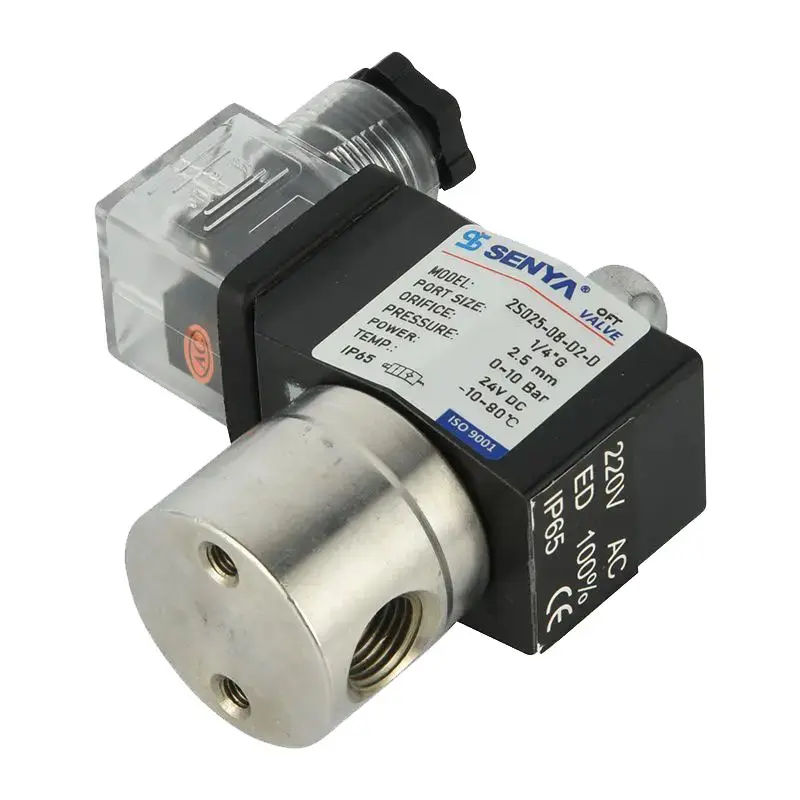 The SENYA 2S Series stainless steel solenoid valves are engineered for extreme chemical resistance, utilizing AISI 304/316L stainless steel construction with electropolished interiors to withstand aggressive media including acids (up to 10% sulfuric/hydrochloric), alkalis, ozone (200ppm), and chlorine gases.