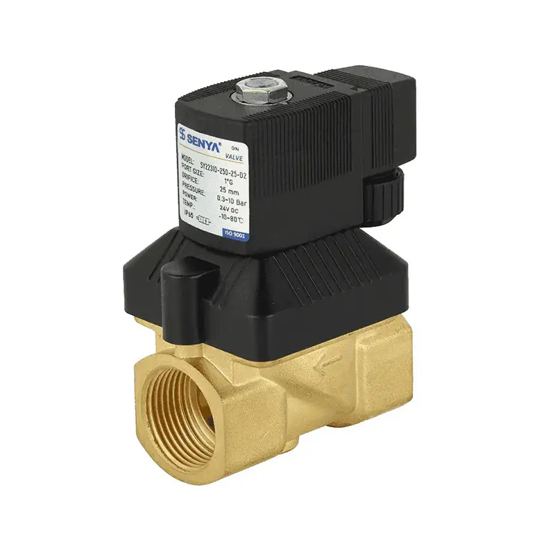The SENYA SY223 Series is a compact and versatile 2/2-way direct-acting solenoid valve designed for space-constrained industrial applications, featuring a rugged valve body construction that ensures reliable performance under demanding operating conditions. With an operational pressure range of 0.5-10 bar, this innovative series delivers exceptional flexibility for various pneumatic and liquid media systems while occupying 40% less space than conventional solenoid valves of comparable port size. Its breakthrough compact design incorporates a unique internal mechanism that enables true 360° multi-directional installation capability, effectively overcoming the traditional limitation of standard solenoid valves that cannot be mounted in inverted positions. This installation flexibility provides significant advantages in complex piping layouts and equipment designs where mounting orientation is often constrained by space limitations.