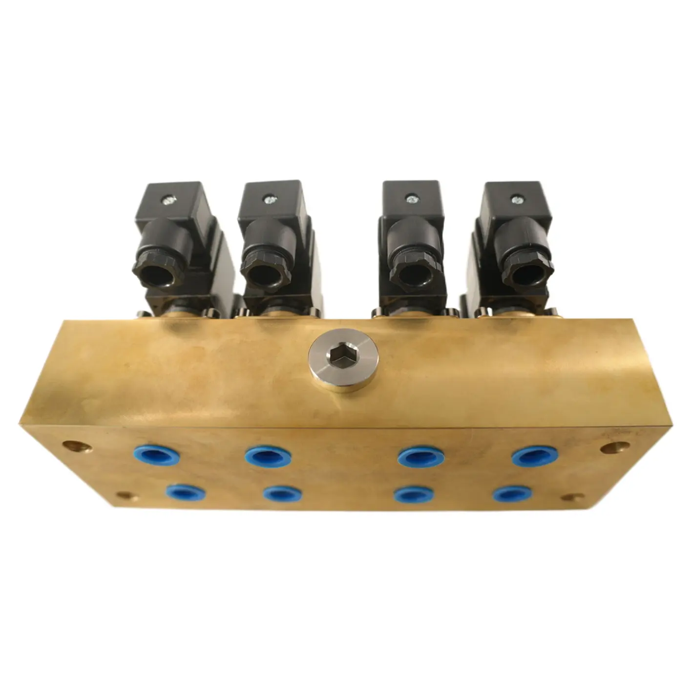 Installation is remarkably straightforward. The manifold block is designed with four through-hole mounting points at its corners. This robust design allows for direct and secure attachment to a machine frame or side panel, saving the need for additional mounting brackets and simplifying the integration process. Furthermore, the “bilateral” nature of the manifold is a key advantage. The common main air supply passage can be connected from either side of the unit. This bilateral connection capability offers immense practical benefits on the production floor, providing greater freedom in pneumatic line routing and making the manifold adaptable to a wider range of machine layouts without requiring complex plumbing solutions.